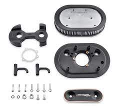 - Kit features a composite air cleaner back plate, air cleaner cover adapter, a high-flow washable synthetic media filter element, and a breather system that routes gasses and excess oil directly into the intake