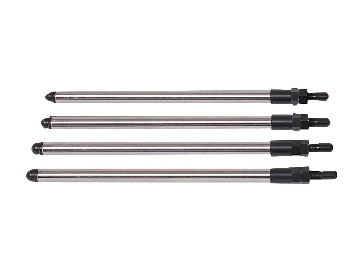 EZ-install pushrods can be installed without removing the rocker covers of fuel tanks, a big plus when switching to a bolt-in cam. Available in chromoly steel and aluminum. Chromoly pushrods are thinner and have better flex resistancy than aluminum. Aluminum is lighter than chromoly and will reduce inertia mass. But for heavy duty service, like racing and/or high lift cams with high pressure springs it is still advised to run chromoly pushrods. Note: See 503689 for aluminum pushrods.