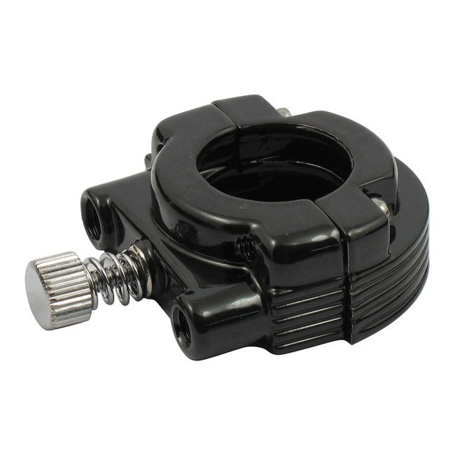 Complete as shown. Includes 56392-77 upper clamp, 56395-81 lower clamp, 916 Allen head clamp screws (2), 56396-74 spring tension screw, 56396-74A friction pad, 3208 set screw throttle stop, 11155 snap ring throttle screw, 56402-83A / 56397-74C throttle tension screw. Note: Order throttle sleeve separately when required.