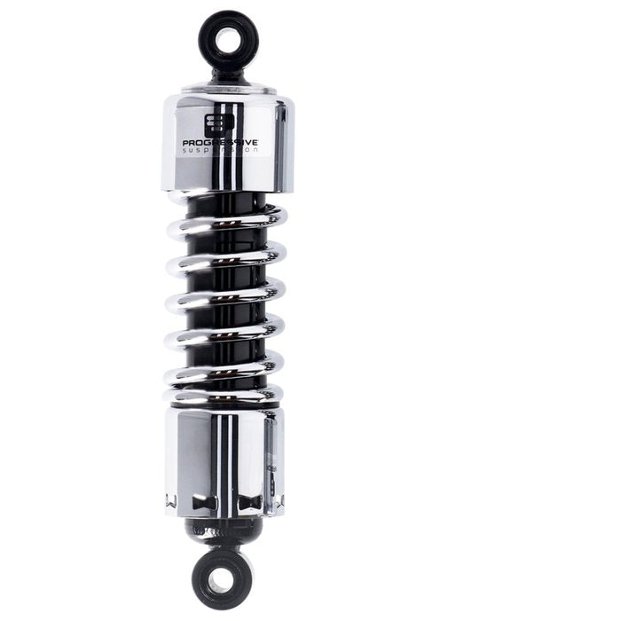 412 series shocks: Best value Progressive Suspension shock, great as stock replacement. Nitrogen charged double steel wall body. Multi-staged velocity sensitive valving. Five position cam style preload adjustment. Note: Black 412 shocks may be supplied without lower cover. What are Progressive Suspension's 'Heavy Duty' shocks? If you are a lightweight rider with a lightweight passenger, STD Duty is probably your best choice, heavy duty shocks will give you a harsh ride. For Big Guys & Gals with a lot of baggage, Heavy Duty springs are the way to go. Heavy Duty is not better, it's different. Heavy Duty shocks or springs are recommended to be used on motorcycles that are operated at or near the manufacturers maximum load rating over 50% of the time.