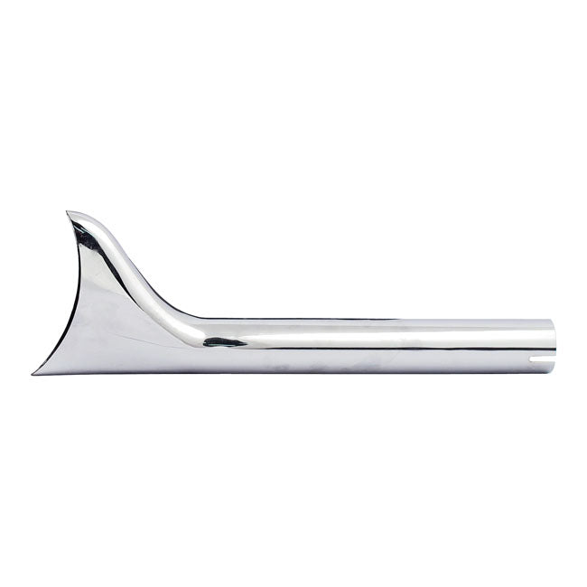 Slip-on Fishtail straight pipes, 18" (45.7 cm) long, with 1-3/4" (4.4 cm) inlet. The outer diameter of this extension is 1-7/8" (4.8 cm). Use with 1-7/8" diameter clamp to mount. Not baffled, no slider channels or brackets.