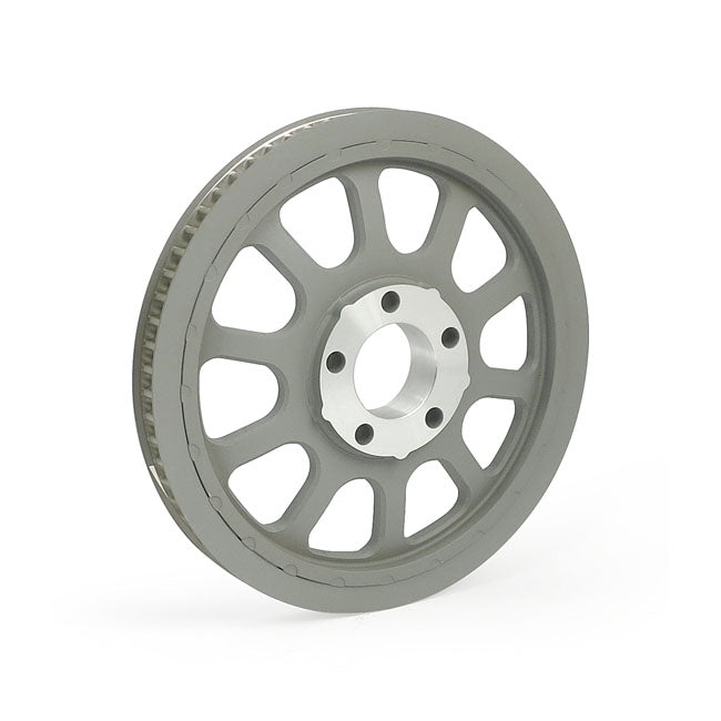 Hard anodized reproduction of the orginal pulley. Note: The width of the OEM belt is mentioned for reference only. - 66T. - Silver - 20mm belt