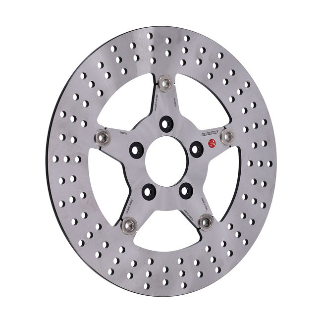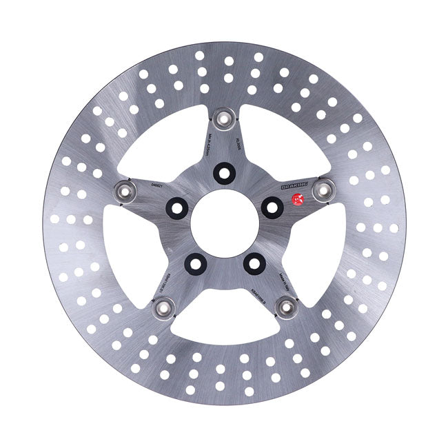 5 spoke floating brake rotor with approval. For OEM & aftermarket wire & cast wheels with 3.25" bolt circle mount holes. Dimensions 300mm OD, 56mm ID, 5/16" counterbored mounting holes.