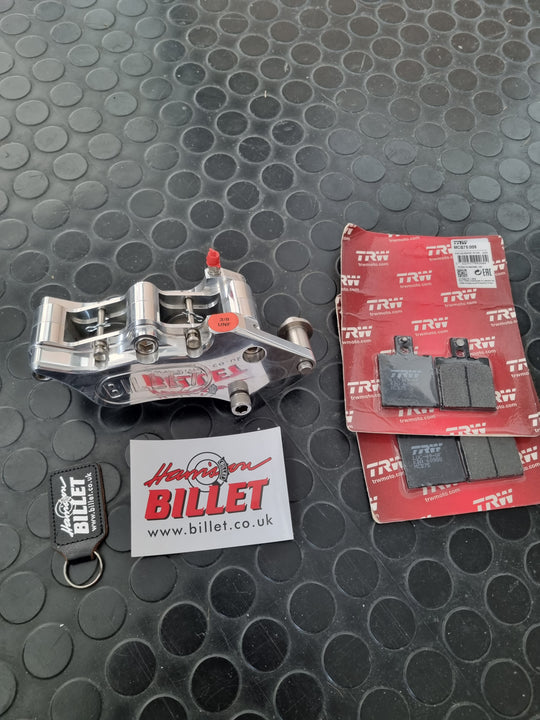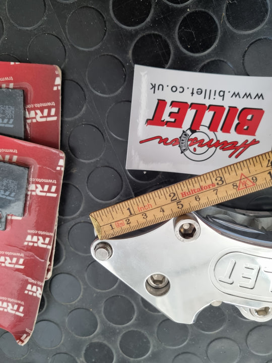 Angebotspreis 3750krNormaler Preis 4610krNytt Harrison Billet 4-kolvs bromsok för 11,5" bromsskiva. Fäste c-c 50-52mm Felbeställning därefter priset -