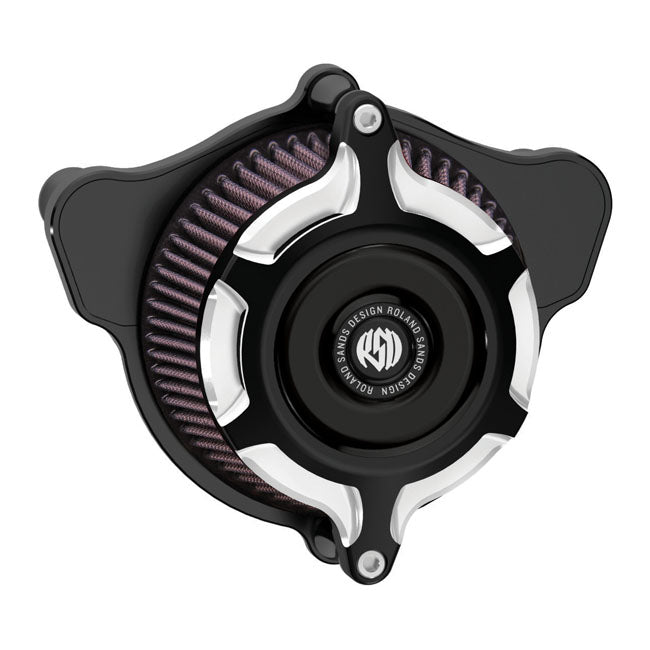 Black anodized with a Contrast Cut machined finish. The smallest RSD air cleaner to maximize leg room. Even with the fitted K&N filter element anything smaller would truly sacrifice airflow, which is not acceptable. So here you have it, the best possible combination between airflow and leg room in a designs that will bring out the best in any bike, from stock to the wildest custom. Note: See 589901 for the optional rain sock and 565225 for the stock replacement K&N air filter element.