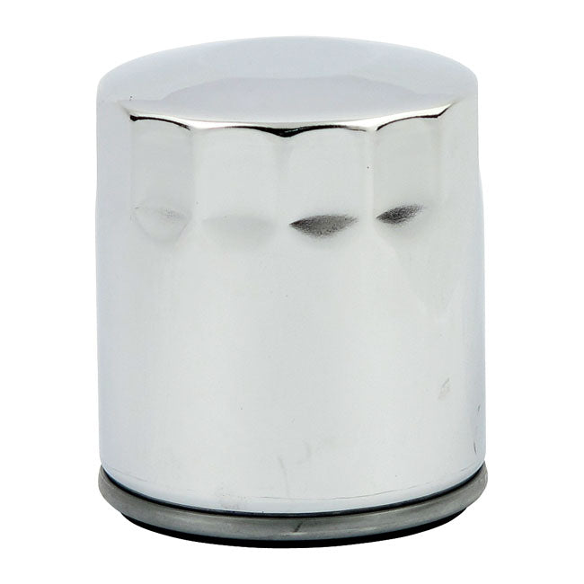With 5-micron filtering media. Magnetic to catch, and hold, additional metal particles. Note: This filter is no longer advised for M8 models as of 2020. The Factory introduced a new filter, with a larger (elongated) body, and added 25% filtering media surface area to better support the higher oil flow in M8 models. For MCS M8 oil filters see 920966 chrome, 920967 black, 920968 chrome with top nut and 920969 for black with top nut.