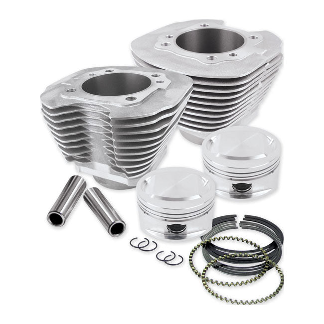 Black powder coated finish. Nothing beats cubic inches and this is the simplest way to flex Twin Cam muscles. Converts the stock 99-06 Twin Cams from 88" to 95" and also increases compression ratio somewhat. Easy to install without any machining or crankcase splitting. Flywheel re-balancing is not required. Cylinder kits contains two 95" (3-7/8" big bore) cylinders and a 95" pop-up piston set with a 5.3cc pop-up dome, which will give a slight compression ratio increase to approx. 9.7:1 with stock heads.