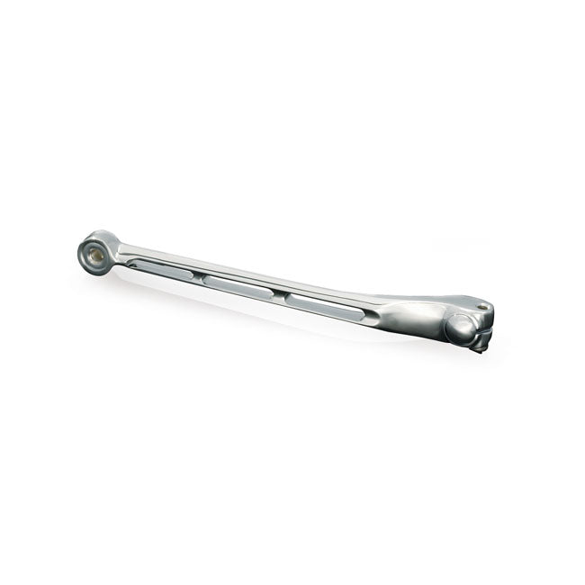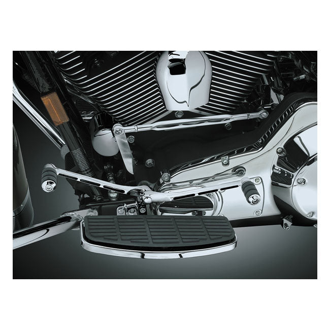 Chrome. Extra long, 8 inch, makes it about 1-3/4" longer and gives a lot more space than a stock Touring or FLST shift lever. Fits front (toe) & rear (heel).