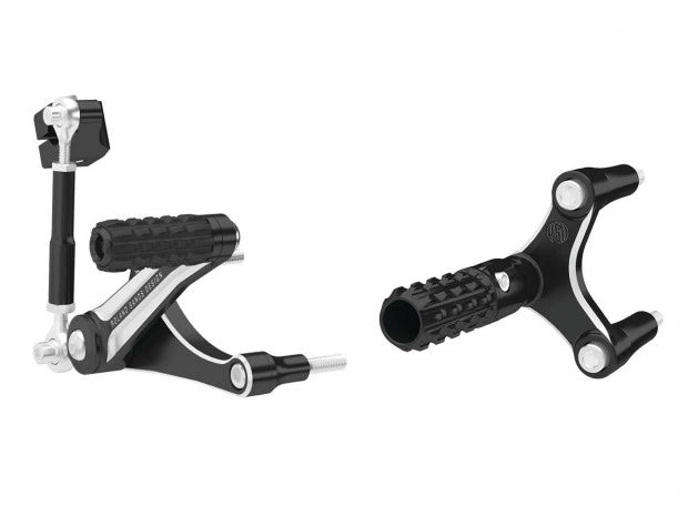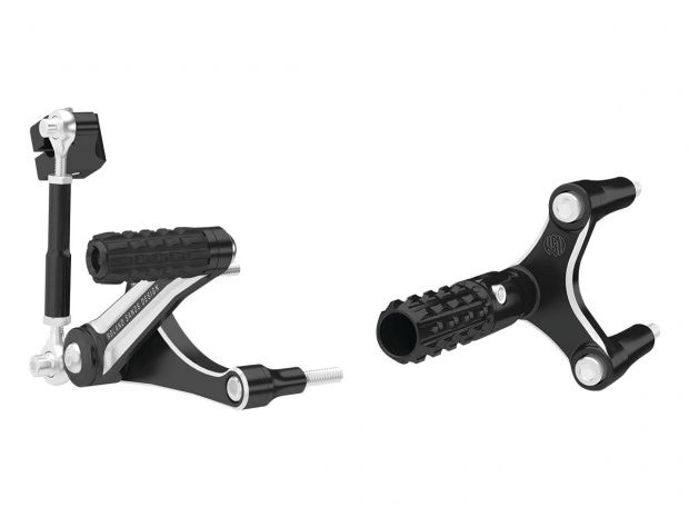 - Eliminates bulky, heavy OEM cast steel footpeg brackets, bell crank brake rod and master cylinder bracket