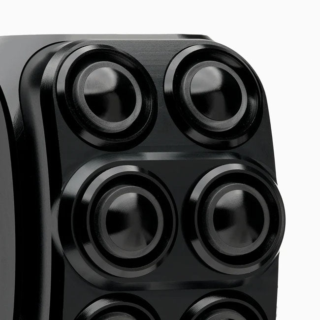 CNC machined and black anodized billet aluminum switch housing. Comes with 6 high quality pre-installed LED illuminated IP65 jet-water protected and vibration resistant momentary push button switches. The pushbuttons are pre-wired and the 2-piece switch housing design allows easy installation for a quick and effortless install with the hidden M4 mount screws. Comes with 1.8 meter highly flexible 8-wire cable, perfect for routing through handlebars when desired. Pushbutton size and pressure point are designed for the best button-feel and are glove compatible. - 6 LED illuminated momentary push button switches - IP65 jet-water protected - Vibration resistant - Pre-installed 1.8m 8 lead wiring - 2-piece CNC machined billet housing - Black anodized - Glove compatible