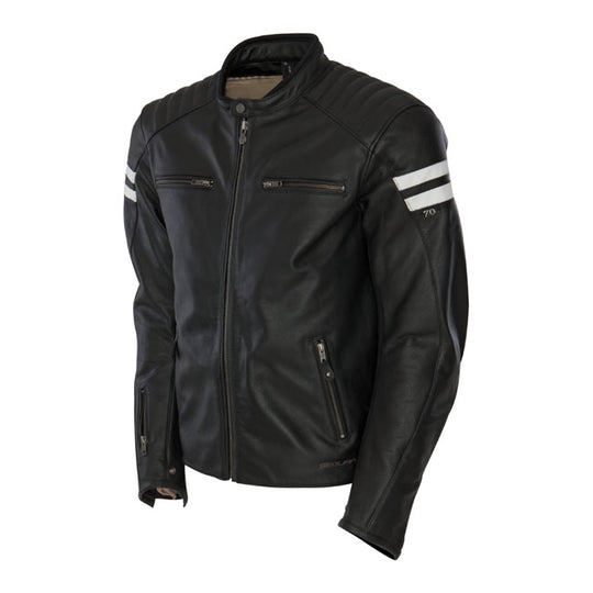 Sale price 2900krRegular price 4650krBLACK/WHITE COW LEATHER Size:XL Removable thermo lining,with CE approved shoulder and elbow protectors.