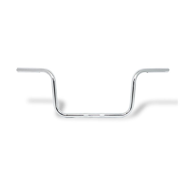 Chrome plated steel. Dimpled. 08-up Electra Glide style with e-throttle. Approx. dimensions: 34.00" (86.4cm) wide x 5.75" (14.6cm) pullback x 9.75" (24.8cm) rise x 12" (43.2cm) base width x 3.50" (8.9cm) knurl width. Note: OEM model and years of the handlebar style, as mentioned, are to be used for style reference only and may not represent actual models/years. Sizes as mentioned are for reference only. Compatible with 1" diameter risers.