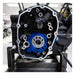 For oil/air cooled models. Complete oil pump and cam support plate kit. A direct replacement for stock pumps and cam support plates. Blue anodized finished and precision machined from billet aluminum. Cam plate comes with bronze bushings and steel 'wear plate' so plate body is protected from steel oil pump rotors, the passage plugs are removable for servicing. The oil pump comes with independent scavenge sections for flywheel cavity and cam chest, with debris screens in both scavenge pickups and a magnet in the cam chest to further help catch debris before it enters the pump. Oil flow on both feed and scavenge side is increased. The pressure relief valve is adjustable and can be adjusted with the pump in engine. Repl. 62400178 & 62400238 oil pump assy & 25400133 camshaft support plate.