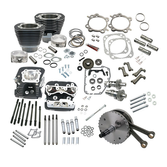 S&S, 124" TWIN CAM TOURING HOT SET-UP KIT WITH HEADS. BLACK