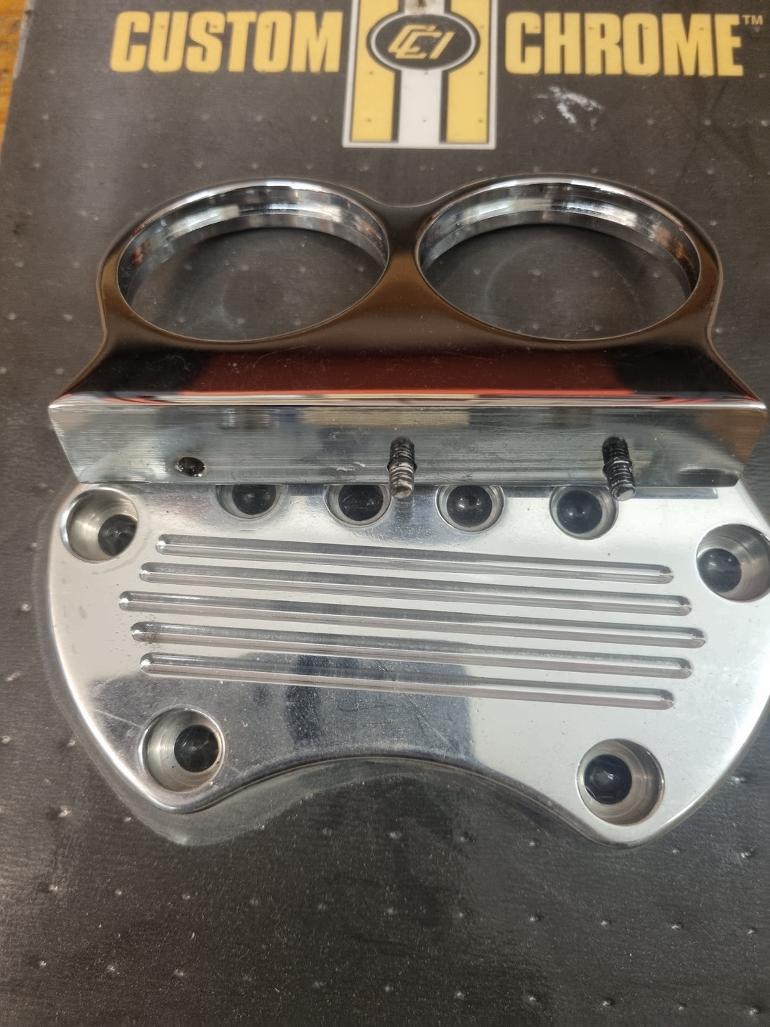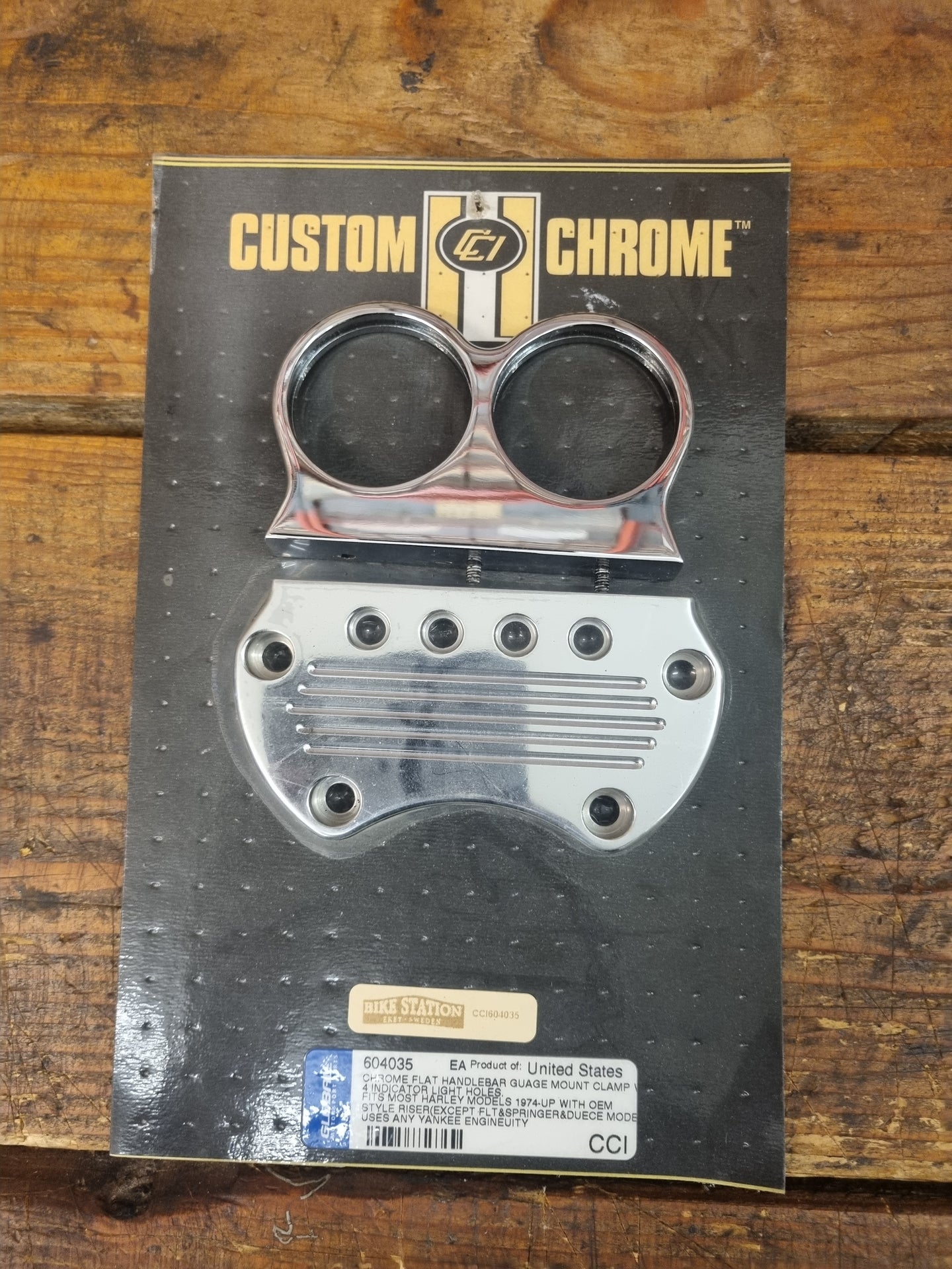 Chrome Flat Handlebar Guage Mount Clamp with 4 Indicator Light holes.(CCI604035)