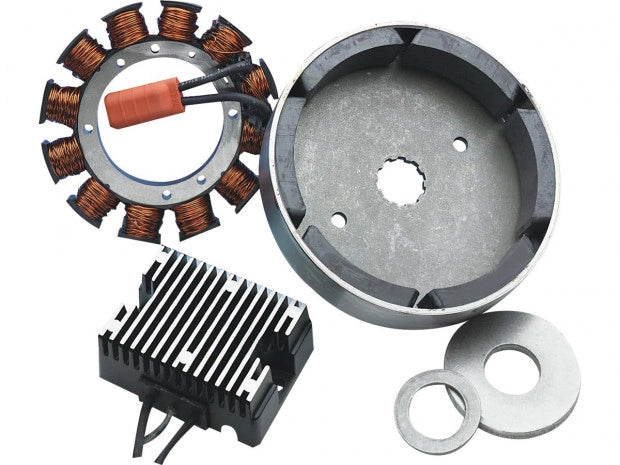 Enjoy a remarkable improvement in electrical performance by installing one of these Motor Factory 32-amp systems. Each one includes a Motor Factory alternator, rectifier/regulator and an alternator rotor.