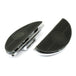 With rubber dampers. Half moon style floorboards that are adjustable to both front/rear and the angle itself for the most comfortable position of your feet. Complete with mounting material. Dimensions approx. 12" wide x 5" high