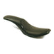 Foam. 9" rider seat width, with a tapered passenger seat. Designed for a custom low look. All seams and edges have been smoothed and the shape is rounded, for a fluid appearance. Manufactured with LePera's 'Marathon' high density foam.