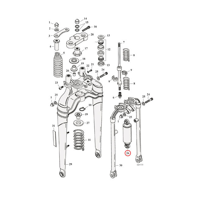 Replacement OEM style front fork shock absorber for all all stock 89-11 Softail, custom and replica aftermarket Springer forks. Dimensions approx. 23cm max. to 17cm minimum length (eye to eye). OEM replacement reference 54484-97