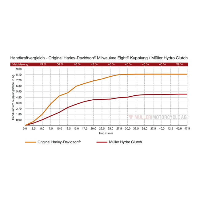 The Hydro Clutch will reduce clutch pull effort from 35% in Twin Cam and 45% in M8 models. It is a bolt-on light-pull replacement for the stock hydraulic clutch actuator in the transmission end cover. A great solution for those in search for an easier to pull clutch.