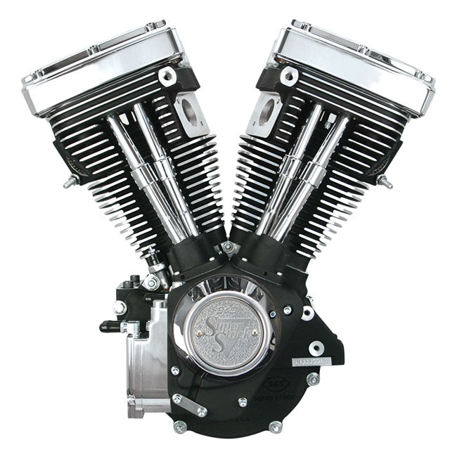 Wrinkle black finish. The basic S&S motor, designed as stock replacement for a stock Evolution Big Twin, instead of overhauling it. Engine is stock 3-1/2" bore x stock 4-1/4" stroke giving stock 80" (1340cc) displacement. Cast pistons with a 8.4:1 CR and a 508 cam. Stock like performance with stock like life. Note: Sold as 'Long Block'. Carburetor, manifold, ignition and charging system is not included.